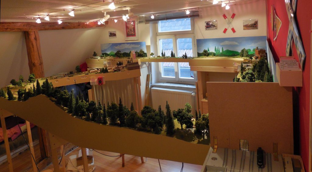 Die komplette Anlage steht nun als Dauerleihgabe bei Eisenbahnfreunden in Siegburg, da ich das Modellbahnzimmer räumen muß.